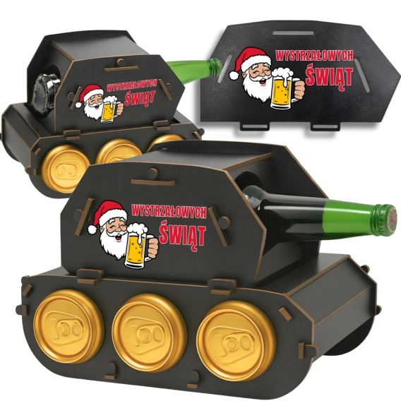 Oryginalny, zabawny i w pełni funkcjonalny czołg na piwo z motywem radosnego Mikołaja to idealny sposób, by dodać świętom luzu i humoru. Wykonany z trwałego HDF i ozdobiony wysokiej jakości nadrukiem UV, stanie się wyjątkową ozdobą świątecznego stołu, prezentem pod choinkę lub niepowtarzalnym upominkiem dla miłośnika piwa.